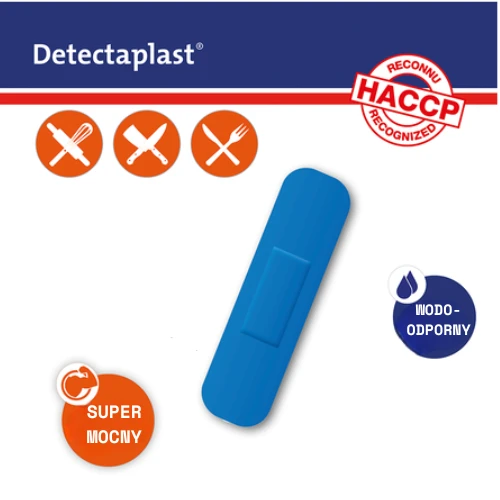 Profesjonalne plastry wykrywalne metalem i promieniowaniem X-ray, wodoodporne, przeznaczone do zakładów produkcji żywności. Niezbędny element wyposażenia zgodnego z systemem HACCP, BRCGS oraz wymaganiami FDA.