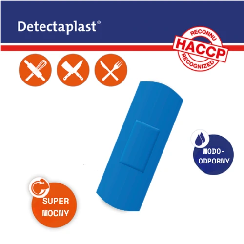 Plastry wykrywalne DETECTAPLAST® – niebieskie, wodoodporne, z wkładką metalową (HACCP)