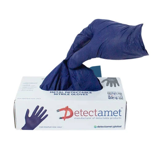 Metalodetekcyjne rękawice nitrylowe Detectamet Detectaglove to profesjonalne jednorazowe rękawice przeznaczone dla zakładów produkcji i przetwórstwa żywności. Dzięki technologii wykrywalności w detektorach metalu oraz systemach rentgenowskich (X-Ray) znacząco ograniczają ryzyko przedostania się ciał obcych do produktu końcowego, co jest kluczowe w systemach HACCP, BRC oraz IFS.