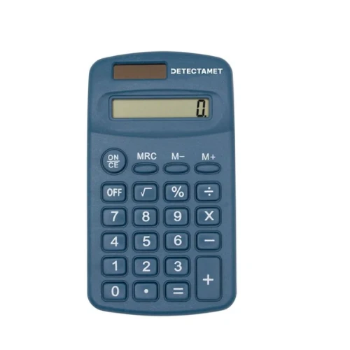 Kieszonkowy kalkulator wykrywalny przez detektor metalu X-ray visible, idealny do zakładów HACCP. Kompaktowy, lekki, z opcją łańcuszka zabezpieczającego. Kolor niebieski, możliwość personalizacji grawerem lub pad printingiem.